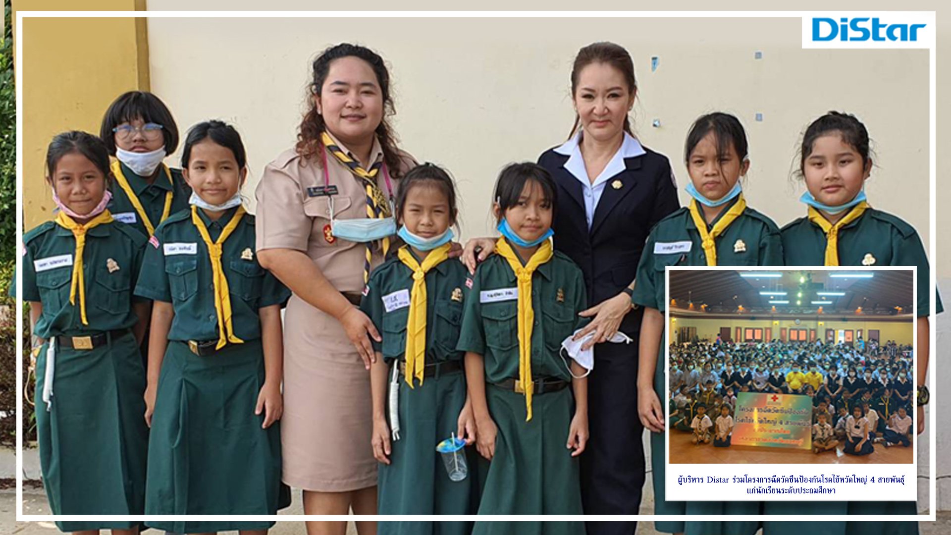 วันที่ 22 ตุลาคม 63 ผู้บริหาร Distar ร่วมโครงการฉีดวัคซีนป้องกันโรคไข้หวัดใหญ่ 4 สายพันธุ์ แก่นักเรียนระดับประถมศึกษา อำเภอละ 400 คน